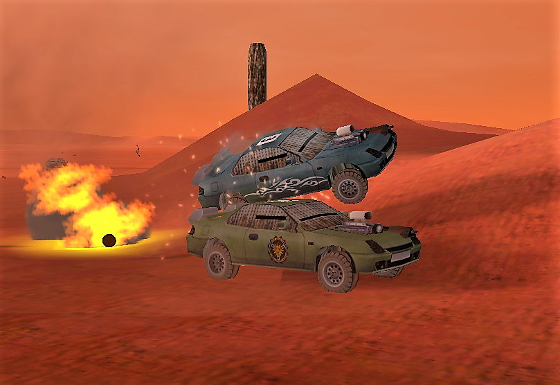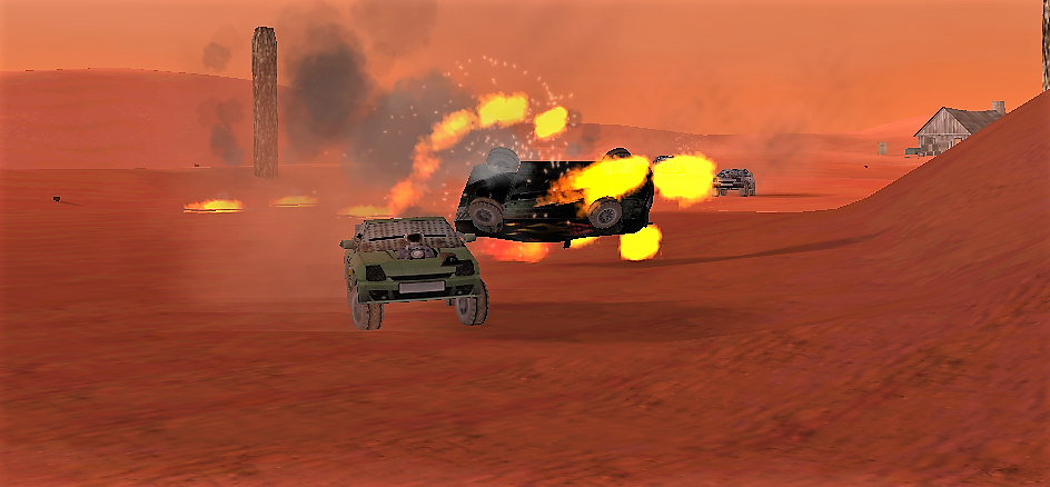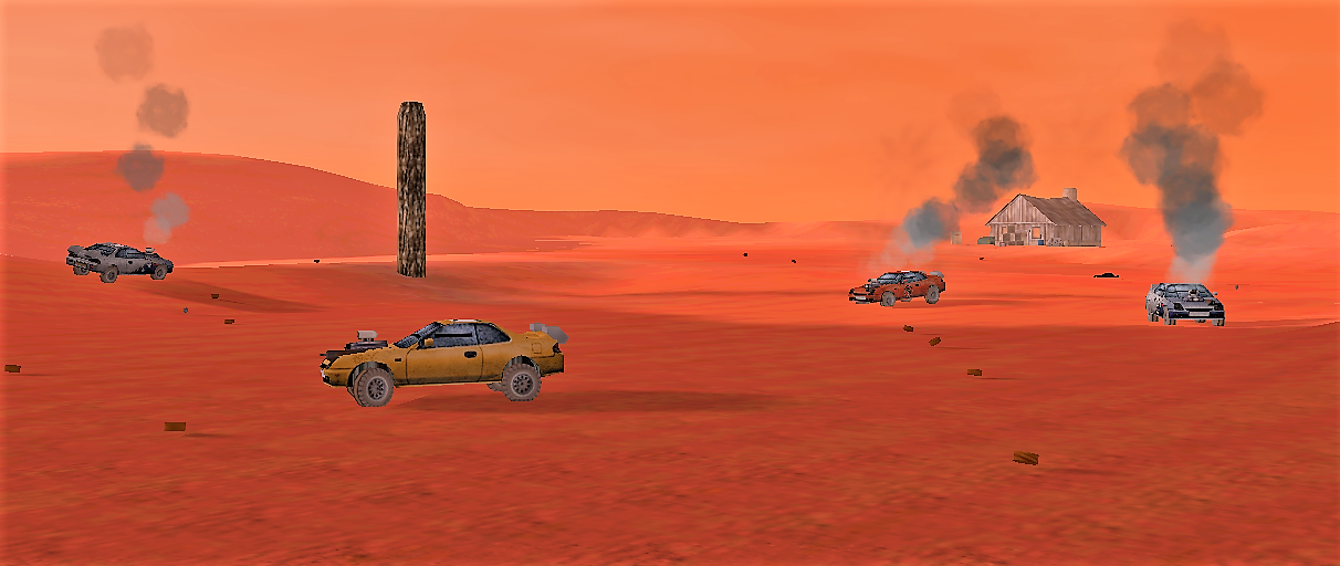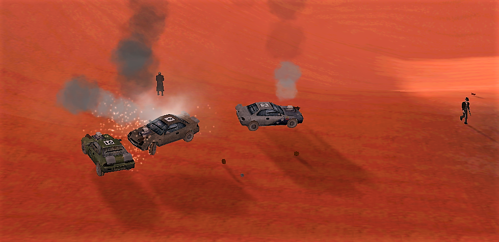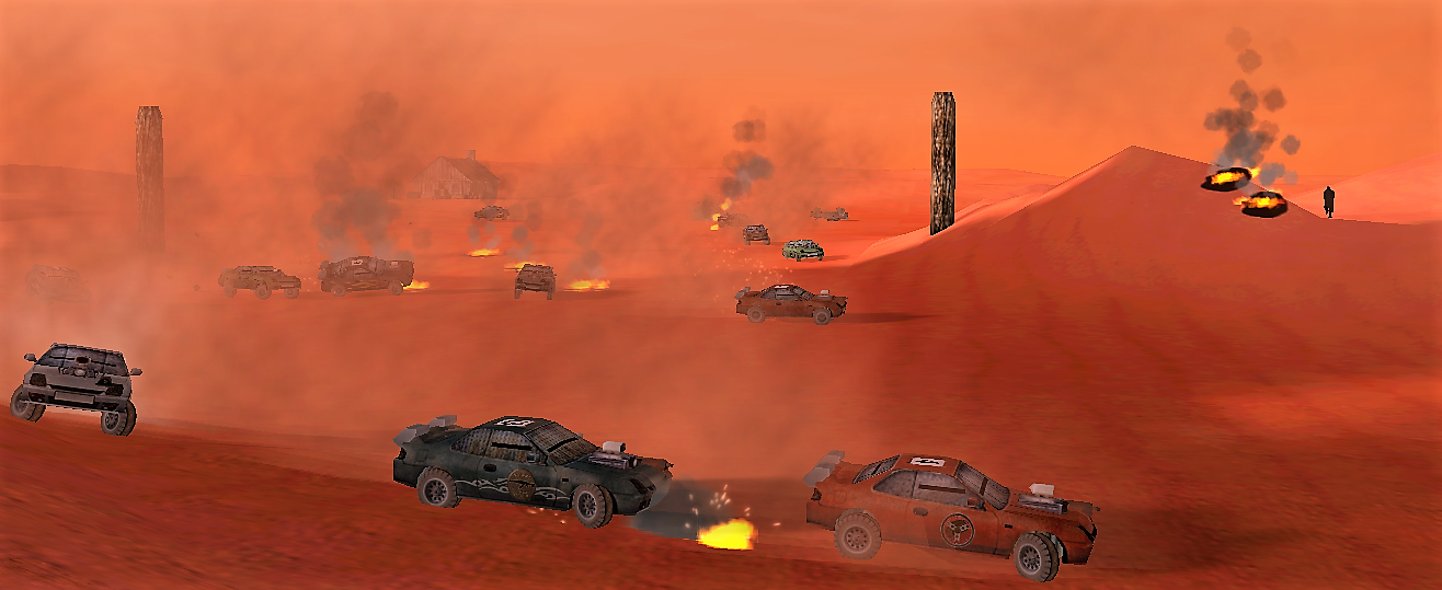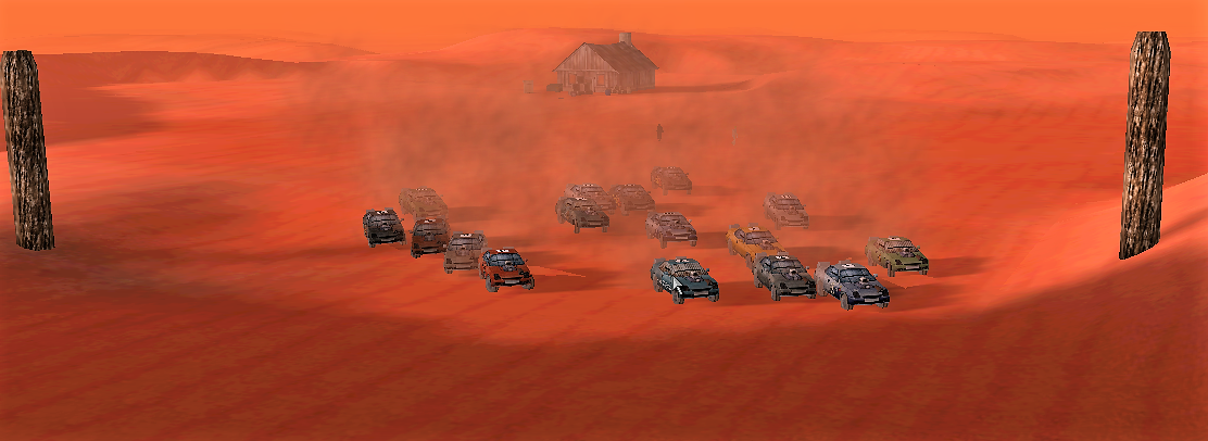 The event organised by the First Bank of Somerset was a no-rules death race, with the first over the line winning a specially prepared Fire Engine. The results were as follows: 1st Richard 'Comet' Haley (Kaizers Orchestra) 2nd Quinton Stanley (El Nubnubs) 3rd Jamie Davie (SilverMoon) 4th 'Stagged ' Johnny Rideout (The White Ashes) Follow the event with our special pictorial story: ![]() And they're off! - ![]() The action starts to heat up at the end of the first lap - ![]() STOP FOLLOWNG ME!!!! - ![]() Mines, Mines and more Mines - ![]() Waiting for the leaders - ![]() That will teach you to shoot at me!!! - ![]() There were a number of car jackings during the race - ![]() KABOOM!!!! - ![]() Once more in to the Mines - ![]() And the Winner crosses the line |