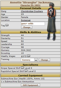 ![]() Activity Level is important: it affects everything a character does. If your character is at 50% activity level, they will run at half speed, shoot with half normal accuracy, drive with half their usual skill, etc. Psychology